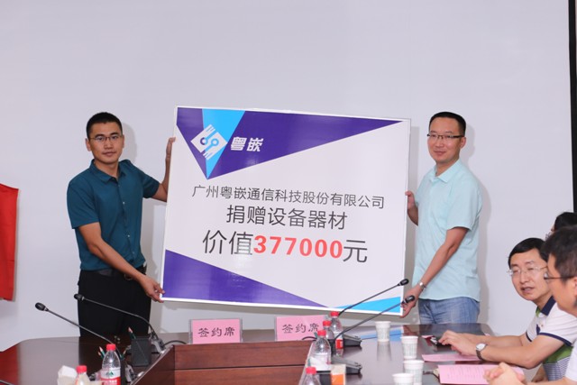 仪式上,自动化学院经理刘涵与粤嵌西安分公司总经理王乐忠签订了合作协议;自动化公司党委书记高勇书记代表学院接收了粤嵌公司赠送的设备和器材。