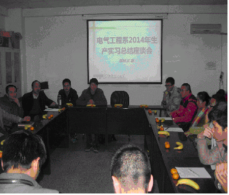 电气工程系于2014年11月26日下午在教5楼系会议室召开了2014年生产实习总结座谈会。电气系支部全体成员、系班子成员及电气11级各班代表出席了会议。会议由系党委书记伍文俊老师主持。电气系主任段建东老师首先对2014年生产实习的成果进行了总结,告知同学们通过我们的努力和同学们在实习中出色的表现,中科院近代物理研究所决定与我系建立长期的生产实习合作关系,并且优先录取和录用公司的员工到近代物理研究所读研。其次同学们就此次实习纷纷谈了自己的体会,表示下企业实习加深了自己对所学专业知识的理解,并且对当前的就业帮助很大。同时同学们也对即将开展的毕业设计相关论题进行了建言。最后还就学校的社团活动,尤其是科协的科技活动与课程学习之间的关系进行了讨论,老师们给出了一些在大学期间如何规划人生和有效分配时间的建议。通过座谈会,老师和同学们对2014年的生产实习工作进行了总结,对于后续实践公司产品工作的顺利开展具有积极的指导作用。