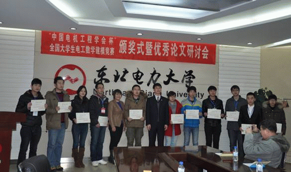 2014年1月中旬,公司荣膺全国一等奖的一支代表队获邀参加了在东北电力大学举行的颁奖典礼,并与来自全国其他高校的十支一等奖代表队汇报成果与交流经验。参加交流会师生的食宿及交通费用由中国电机工程学会、电工数学专委会以及东北电力大学共同承担。