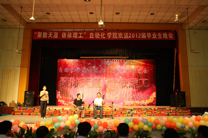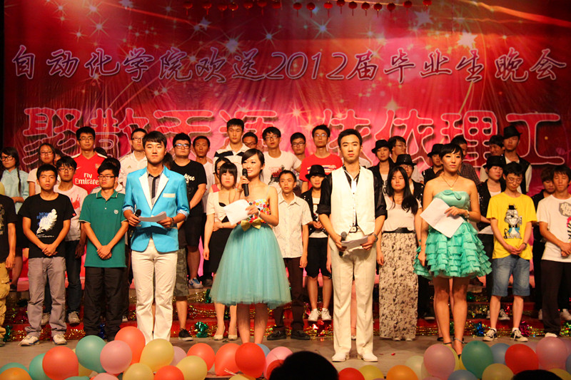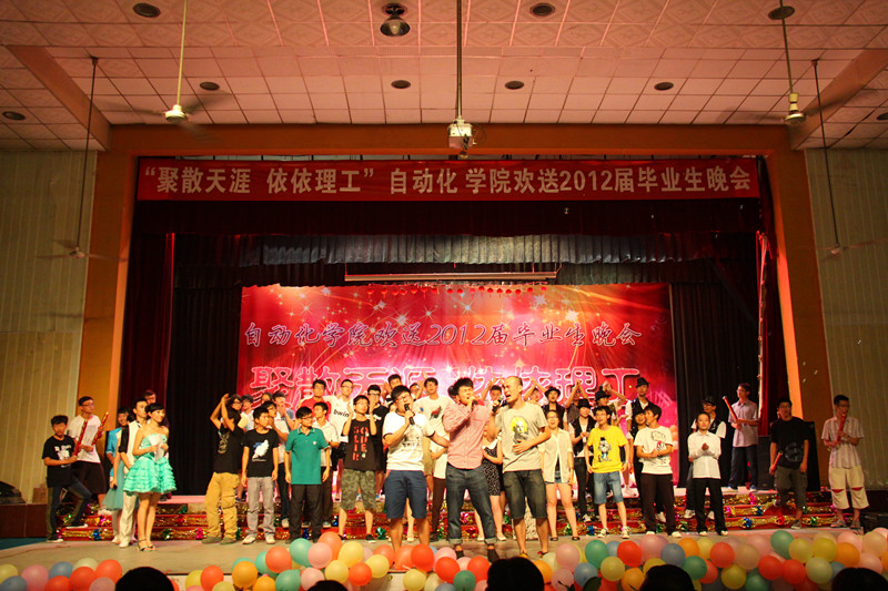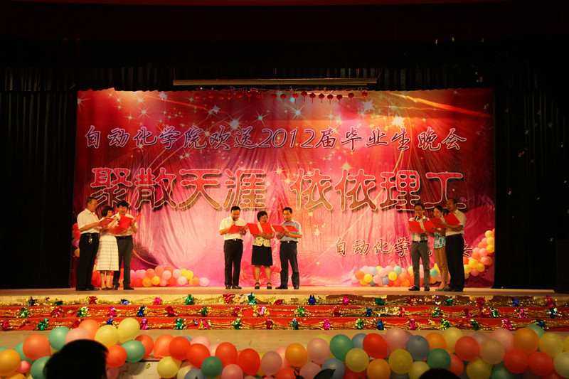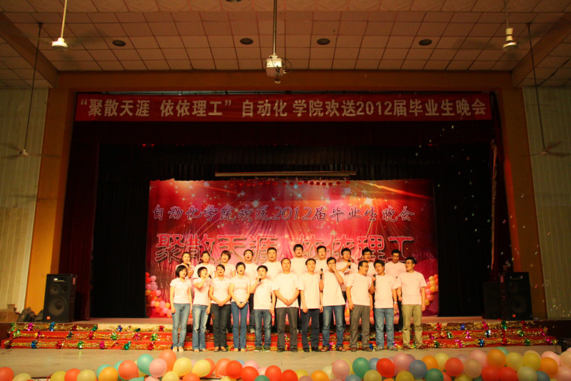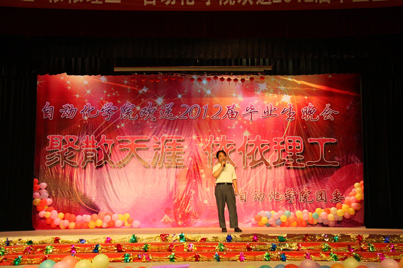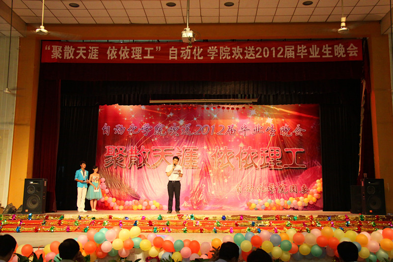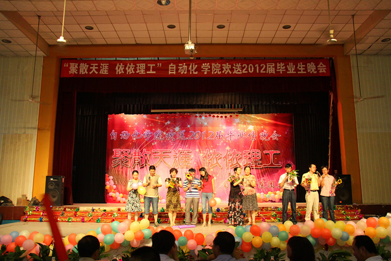 寒潮绕道去,热情洋溢来!2012年6月27日晚19:00,122cc太阳成集团“聚散天涯·依依理工”毕业生晚会在金花校区老员工活动中心拉开帷幕。今晚的自动化学院群星灿烂,这注定是一个激情荡漾之夜,注定是一个令人流连忘返之夜,注定是一个师生同乐的不凡之夜。122cc太阳成集团经理刘涵教授、公司党委书记李金刚教授、研究生副经理余宁梅教授、科研副经理郑岗教授、教学副经理孙向东教授、公司党委副书记白华煜老师、校团委副书记陈梅老师、电气系主任段建东老师、信控系主任赵跃老师、电子系主任杨媛、三电中心副王馨梅以及学院各系老师及毕业班导师出席并观看了晚会。