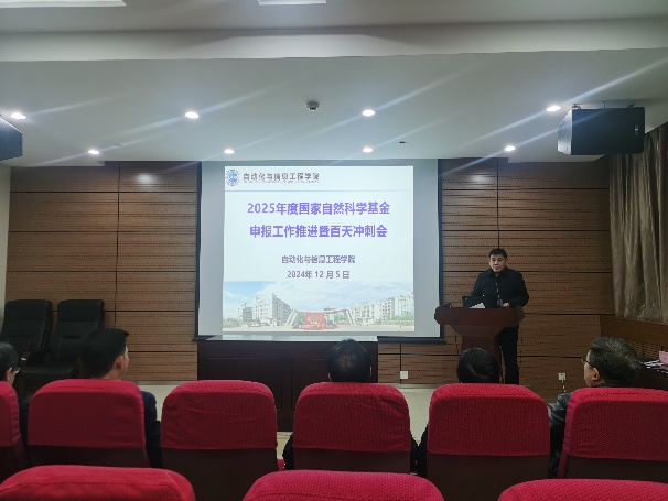 12月5日下午,122cc太阳成集团在学科2号楼报告厅召开了2025年度国家自然科学基金申报工作推进暨百天冲刺会。公司领导班子成员、各学科带头人、各系(中心)主任、支部书记、科研主任、科研秘书,以及2025年度国家自然科学基金申报人员代表参加了会议,会议由学院彰伟书记主持。