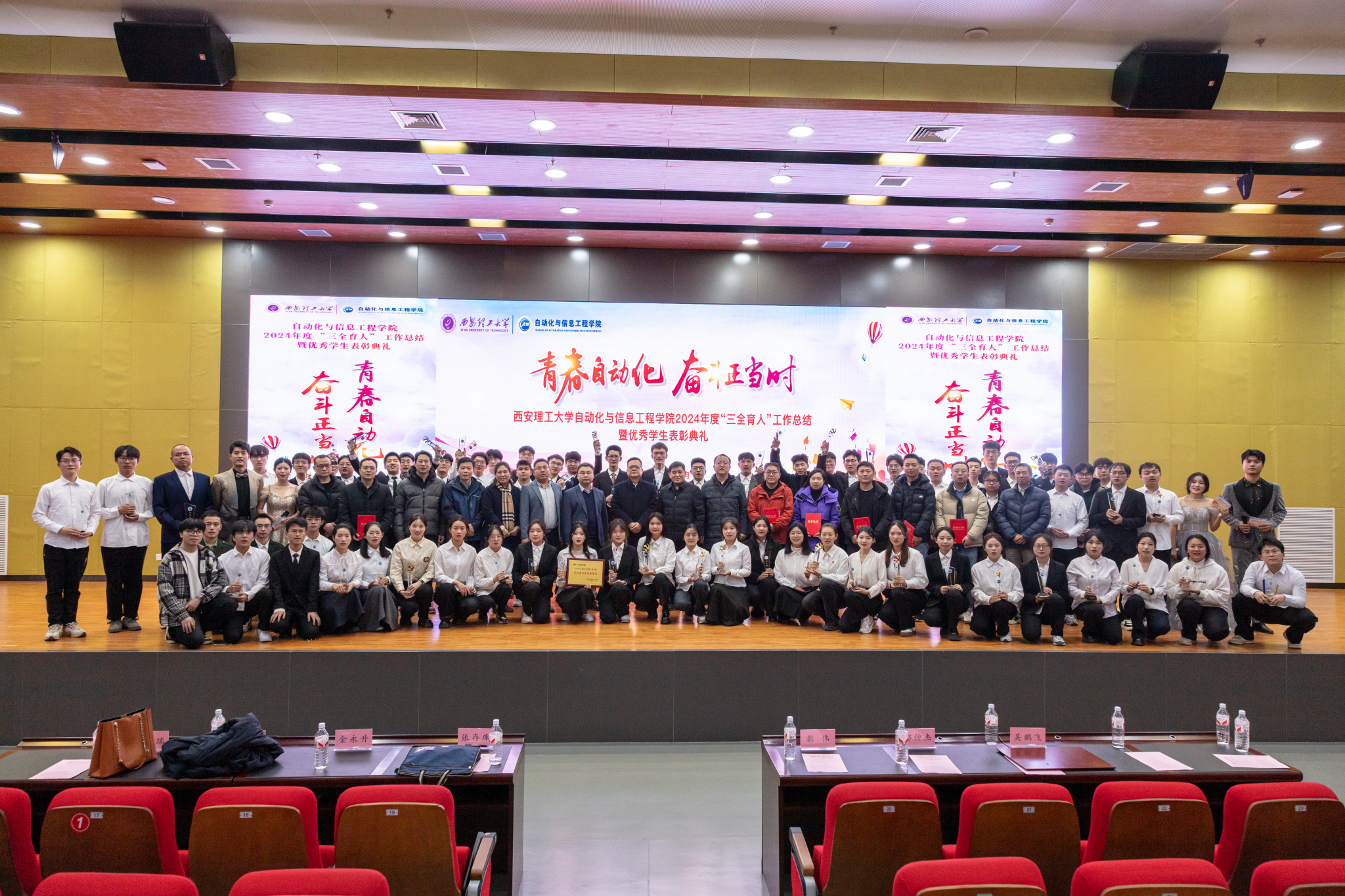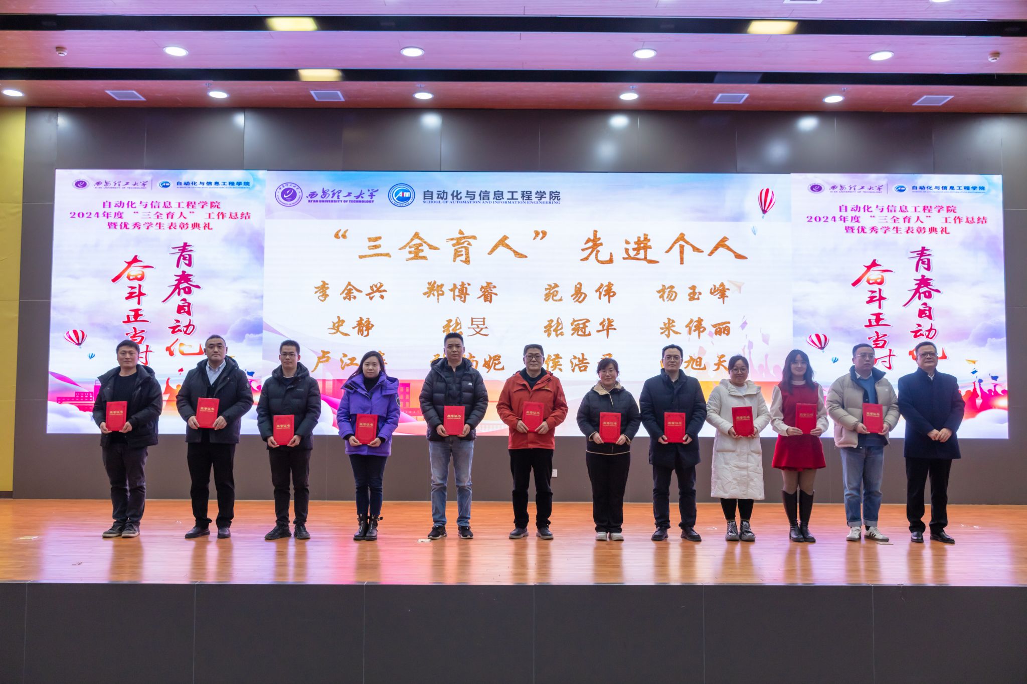 大会表彰2024年度“三全育人”先进集体2项、“十育人”先进个人10人。他们在各自的工作岗位上赓续发扬着西理工精神,书写着属于自动化人的奋斗篇章。2024年122cc太阳成集团荣获全国教育系统先进集体荣誉称号,学院获批电子信息专业博士点,学院6人获批三秦英才计划,成绩斐然。是他们的实干笃定为员工树立了学习的楷模。