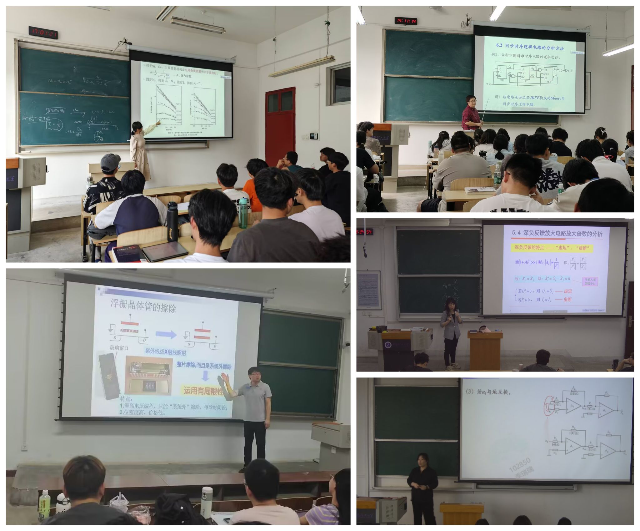 来自各专业系的五名教师进行了课堂教学示范,分别是:王凤娟老师主讲的《半导体物理导论》、杨兆年老师主讲的《半导体集成电路》、阎晓妹老师主讲的《数字逻辑与数字系统设计》、周红芳老师、郭庆吉老师主讲的《模拟电子技术》。各位老师在授课过程中理论与实际相结合,教学目标明确,教学设计思路清晰,教学过程流畅,课件图文并茂,知识由浅入深,师生互动有效,课堂氛围活跃,展现出公司教师的活力与热情,学院近几年新入职的青年教师进行随堂观摩学习。