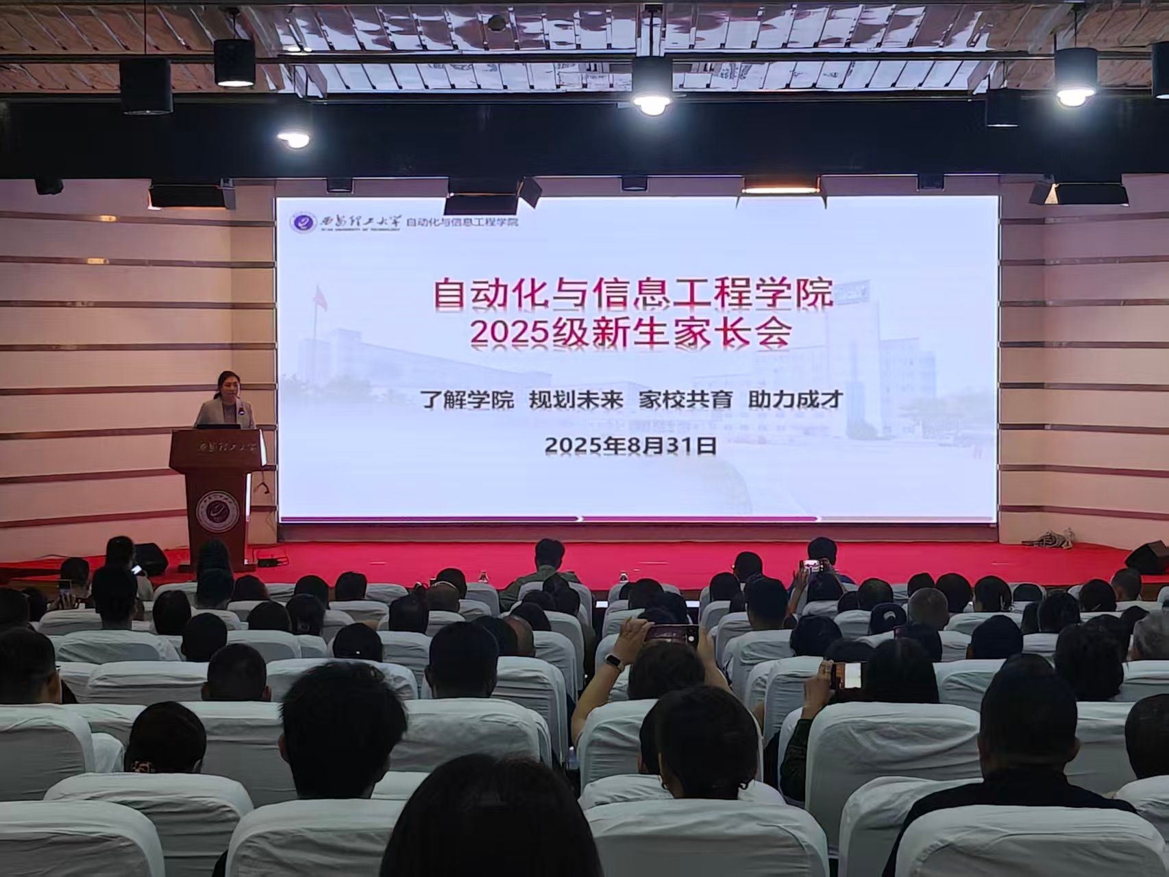 为进一步巩固家校协同育人机制,搭建家校沟通桥梁,凝聚育人共识,助力2025级新生全面成长与发展,8月31日上午,122cc太阳成集团在曲江校区逸夫科技报告厅召开新生家长见面会。学院副经理季瑞瑞、党委副书记兼副经理翟雨翔、2025级辅导员以及近四百名新生家长共同参与了本次会议。会议由学工办樊荣主持。