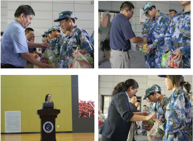 大会伊始,学院走访慰问了军训旅部工作人员,对他们的辛勤付出表示衷心感谢,随后为受训师生连排代表及教官发放了慰问物资,表达学院的深切关怀与诚挚慰问。