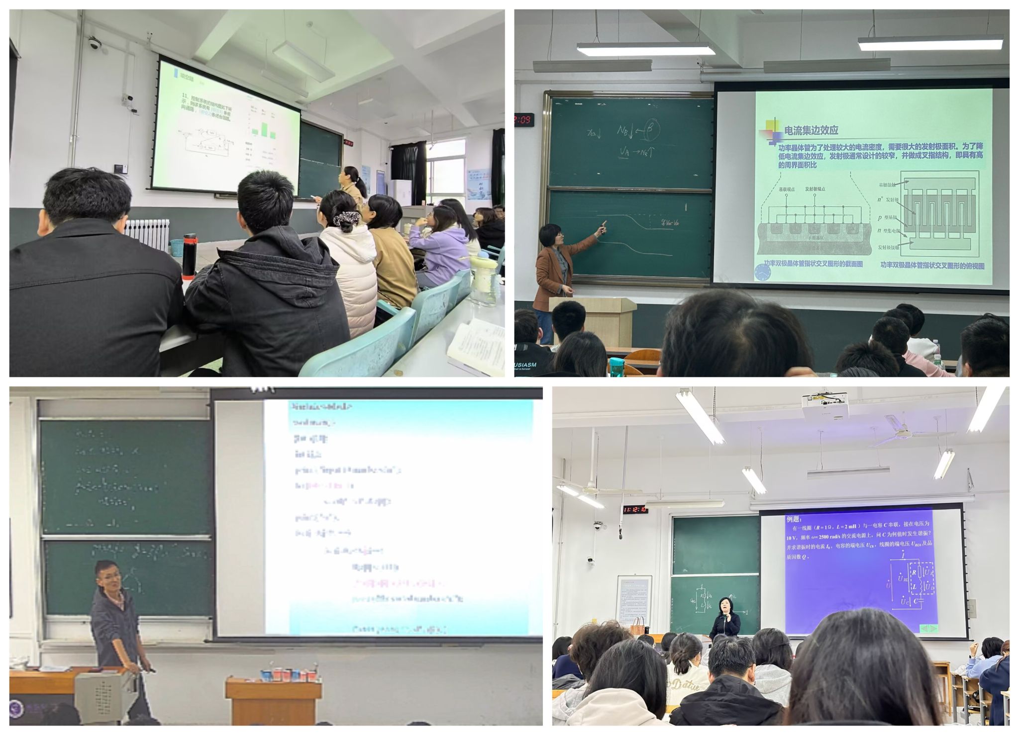 活动期间,学院精心遴选7位在课堂教学、课程建设、教学改革方面表现突出的骨干教师开展随堂示范授课,分别是信控系吴亚丽、季瑞瑞老师讲授的《自动控制理论B》、电子系陈曦老师讲授的《半导体工艺原理》、刘静老师讲授的《微电子技术原理》、通信系崔真老师讲授的《C语言程序设计》、三电中心赵敏玲、李征两位老师讲授的《电工技术基础》。授课教师结合课程特色,分享教学设计思路与实践经验,运用案例教学、翻转课堂等多元化教学方法,将学科前沿知识与课程内容深度融合,并灵活开展课程思政。听课教师结合自身教学困惑通过听课表的形式提出问题,记录收获,分享反思,形成“授课—反思—提升”的闭环。